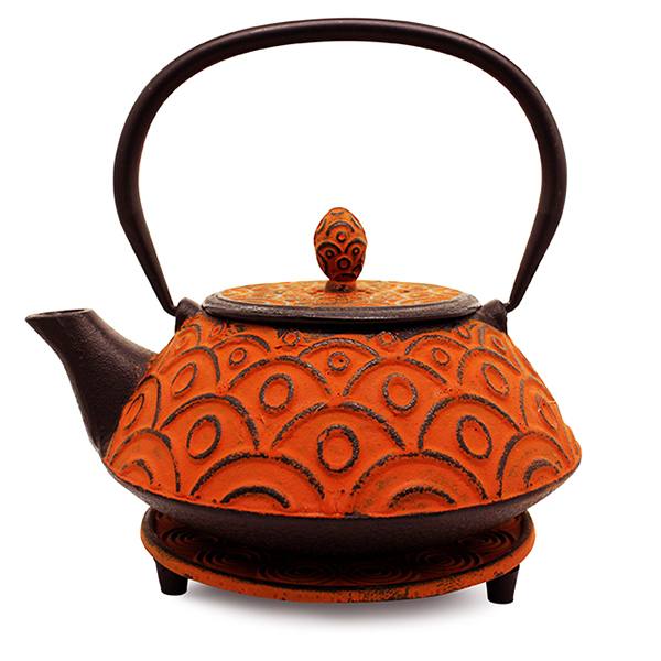 Pumpkin Spice Fan Iron Teapot 800ml (Comes with quality mesh strainer and trivet base).