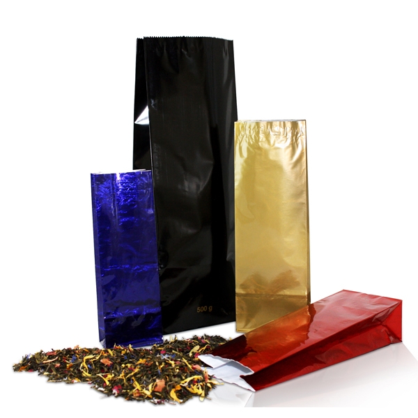 Bags Black 500g (100). High quality foil and paper lined tea packaging bags.