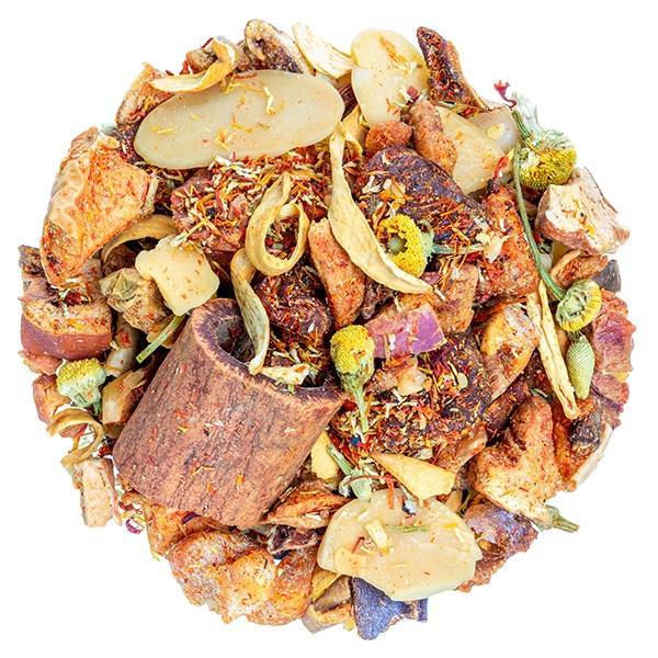 Ingredients: Apple pieces, grapes, pear pieces, St. Johns bread, almond, cinnamon, orange blossoms, chamomile flowers, thistle flowers, natural flavour.
