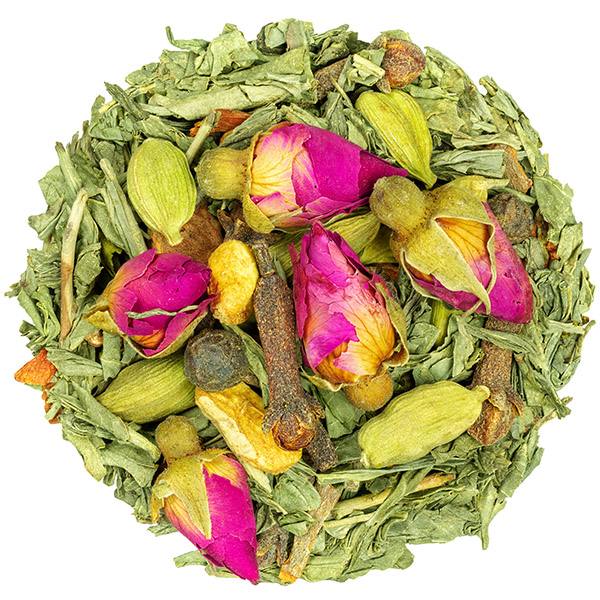 Naturally decaffeinated green tea blended with rose & aromatic chai spices.