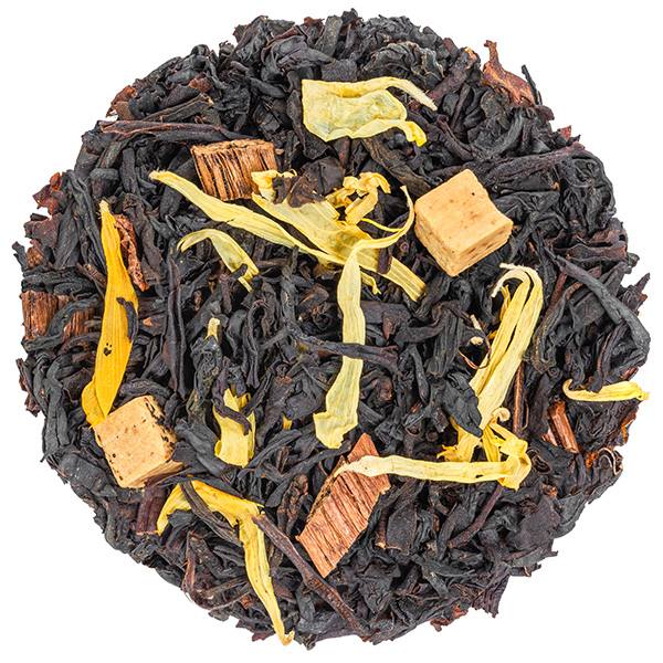Ingredients: Black tea, cream-caramel pieces, vanilla pieces, marigold blossoms, bergamot, natural flavour.
