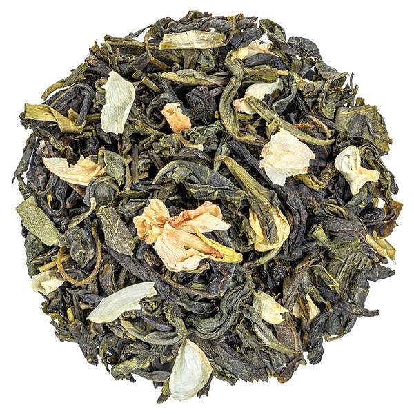 Fresh and floral Jasmine green tea blended with delicate Jasmine Blossoms. Very popular all around the world.