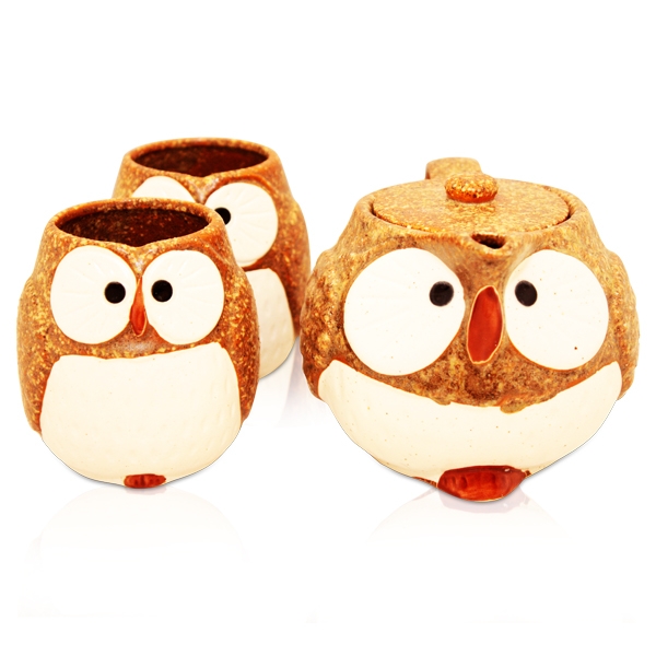 Lucky Owl Caramel Teapot & 2 Cup Set 500ml (filter included). A cute and quirky owl design – Great gift idea, comes gift boxed.