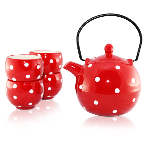 Polka Dots Red Teapot 4 Cup Set 600ml (filter included). Set comes gift boxed.