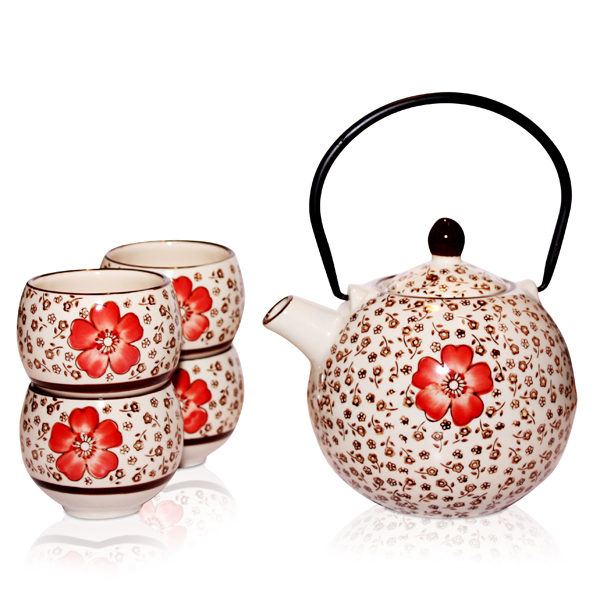 Oriental Hibiscus Teapot 600ml and 4 Cup Set (filter included). Set comes gift boxed.