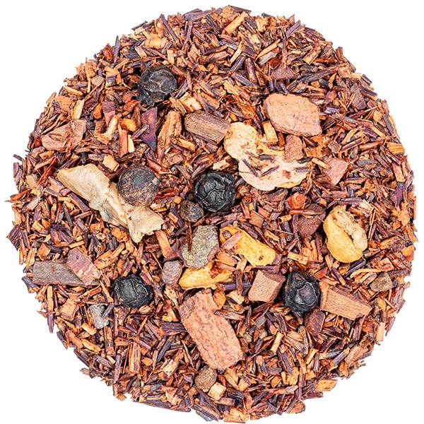 Ingredients: Rooibos, cinnamon, cardamom, ginger, black pepper, fennel seeds, nutmeg, cloves, natural flavour.
