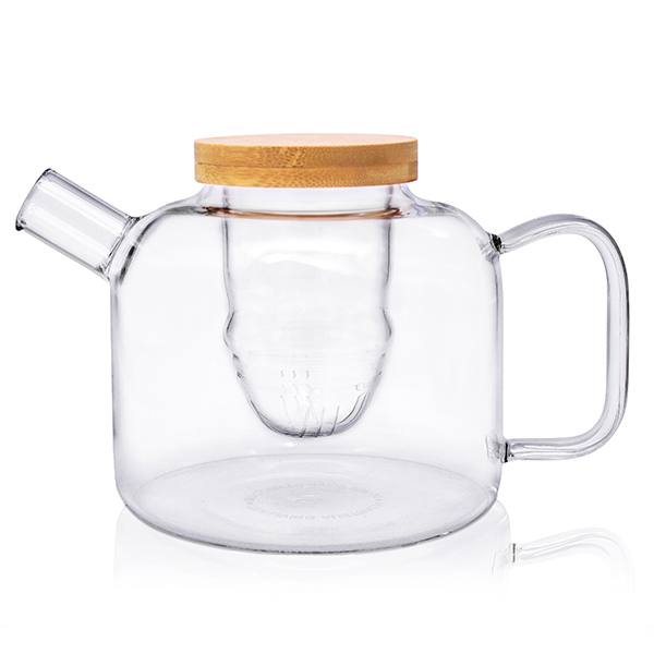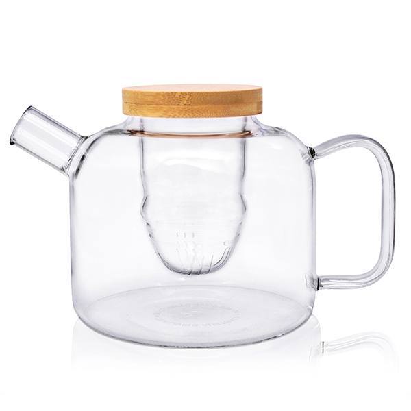 Tea Living Bamboo Lid Glass Teapot with glass strainer 800ml. Quality heat resistant glass.